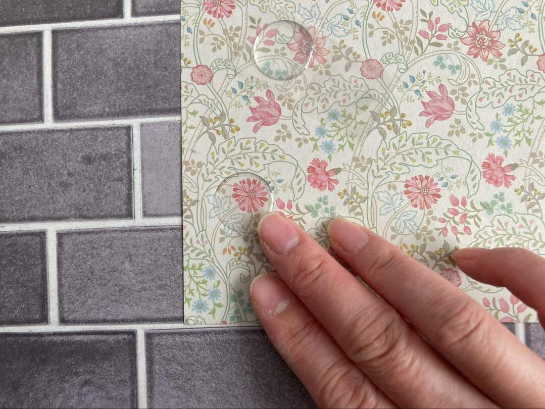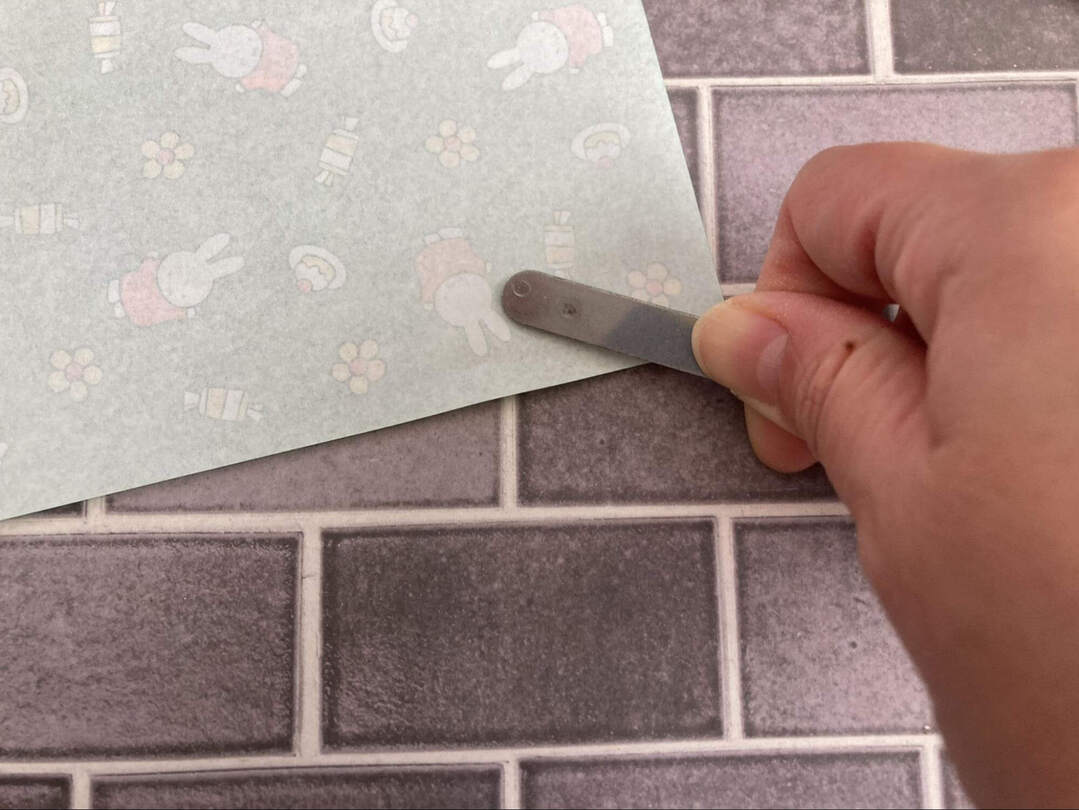 厚みのあるものや、カバーとの接着が弱い場合にはヘラなどを使ってこすり、しっかり密着させます。