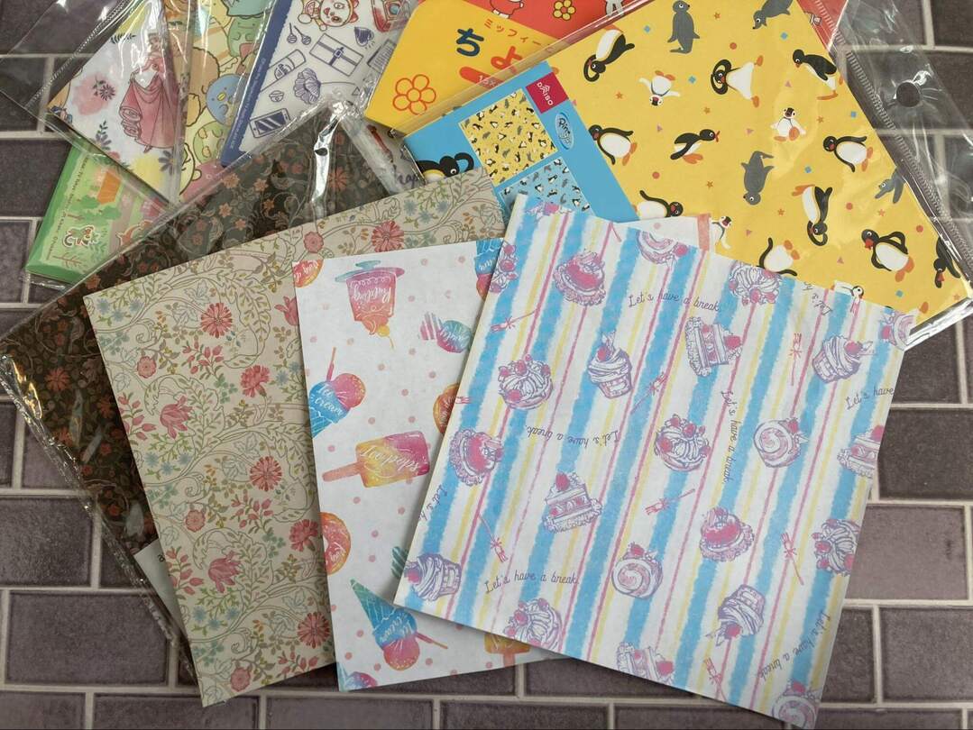 まずは自宅にたくさんあった100均のデザインペーパーを使ってみることに。最近の折り紙やデザインペーパーはキャラクターものも充実していますよね!