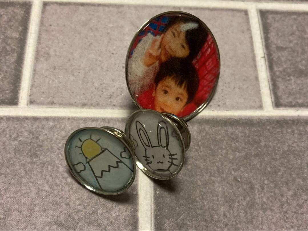 キットには、透明のカバー(ドーム部分)と土台となるプレート、留め具の3つのパーツが入っており、土台とカバーの間に好きなものを挟んでピンを作るしくみです。
