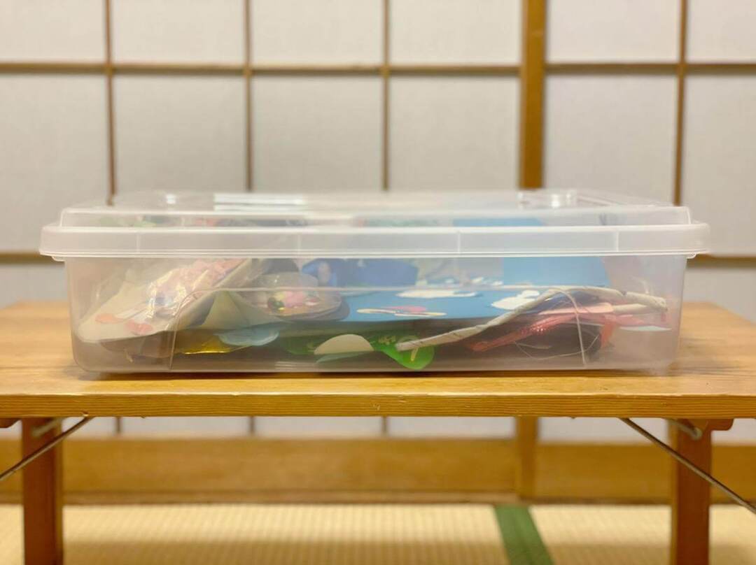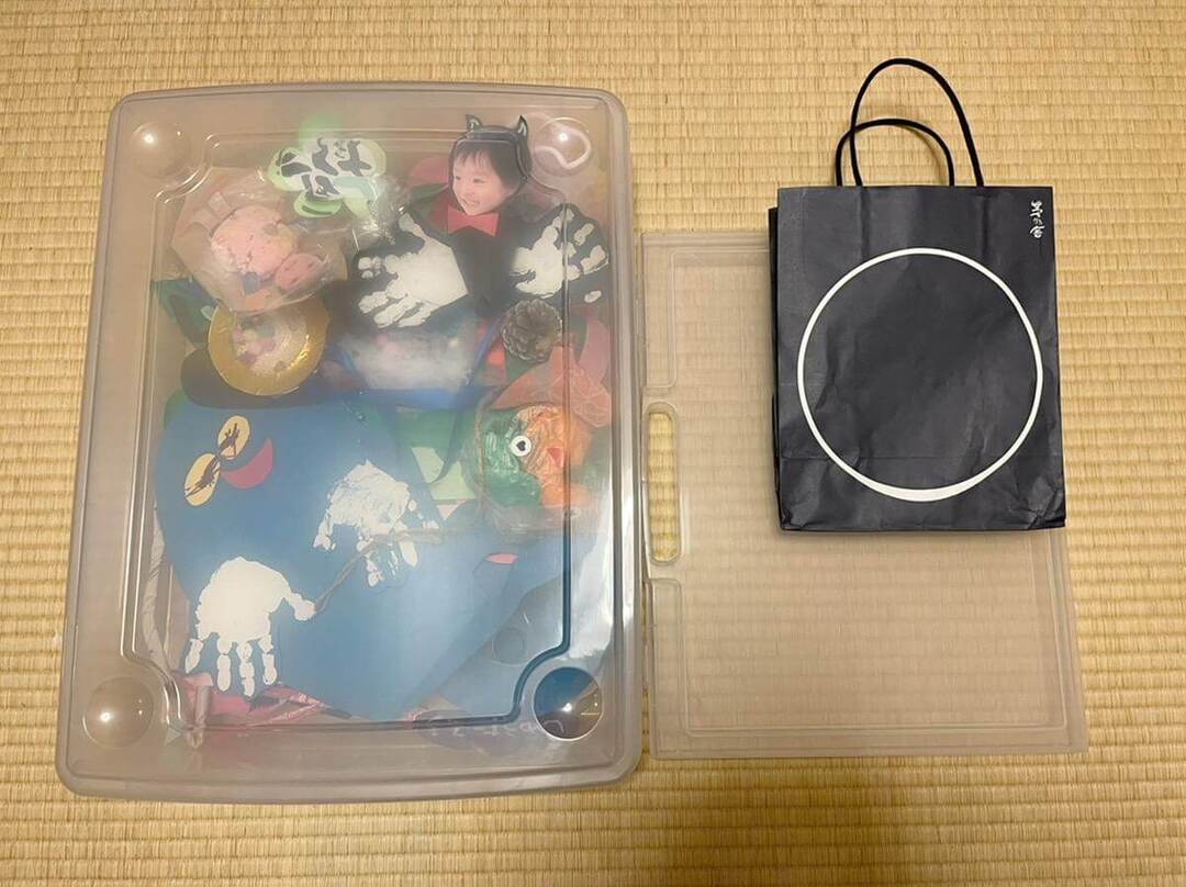 ダイソー「ベッド下収納ケースワイド」を使えば、次に祖父母に会えるときまで大事に息子の成長の思い出を残せそうです。