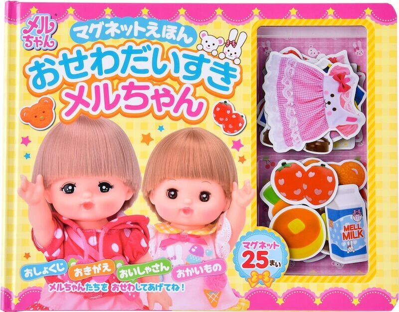 お世話人形メルちゃんと、妹のネネちゃんが登場するマグネットブック。