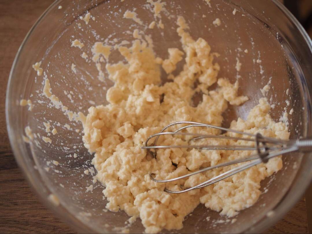 1.ボウルに豆腐を入れて泡立て器でつぶします。(完全になめらかにならなくてもOK!)