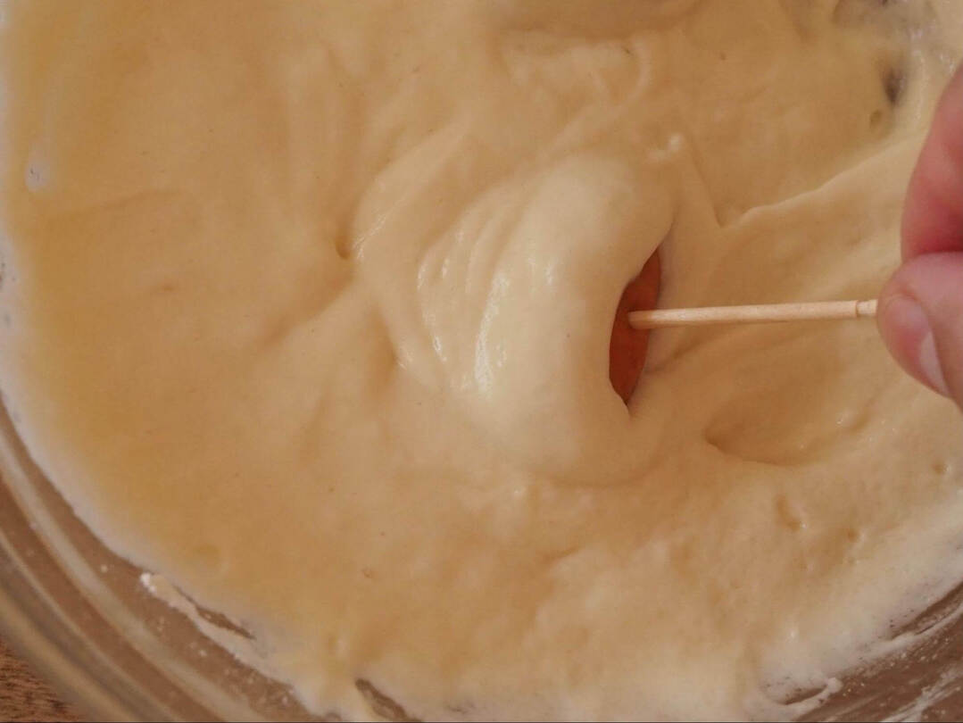 ふわふわにふくらみました。カップの厚みなどにより火の通り具合が変わるため、竹串などさして生の生地がくっついてこないか確認すると安心です。