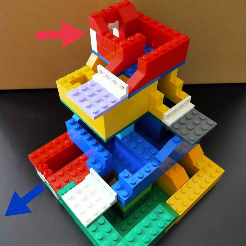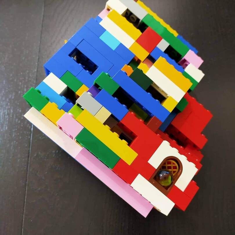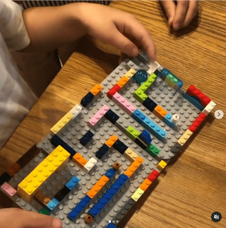 こちらはお子さんが作ったレゴ迷路にママが挑戦したそう。なんと屋根付きなので、ビー玉がどこにあるか見えにくく難易度が一気にアップ!