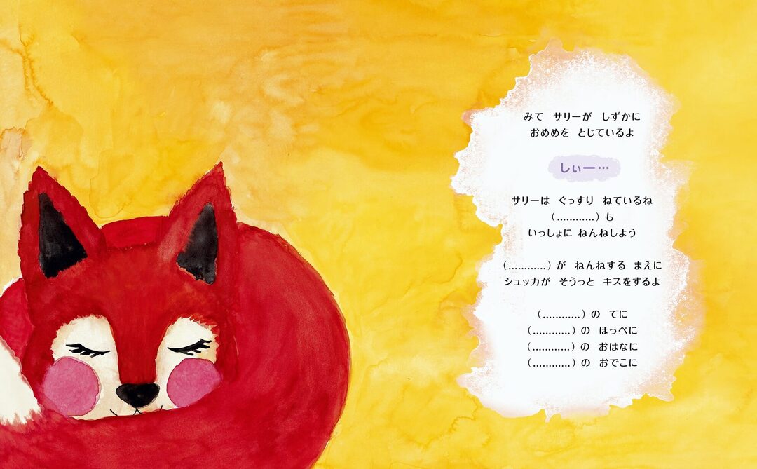 この絵本の特徴は先述したように"眠くなるしかけ"があることですが、もうひとつ、本文に読み聞かせる子どもの名前を入れる部分があることが大きな特徴です。子どもは主人公になった気分でお話にぐっと入り込んでいきます。