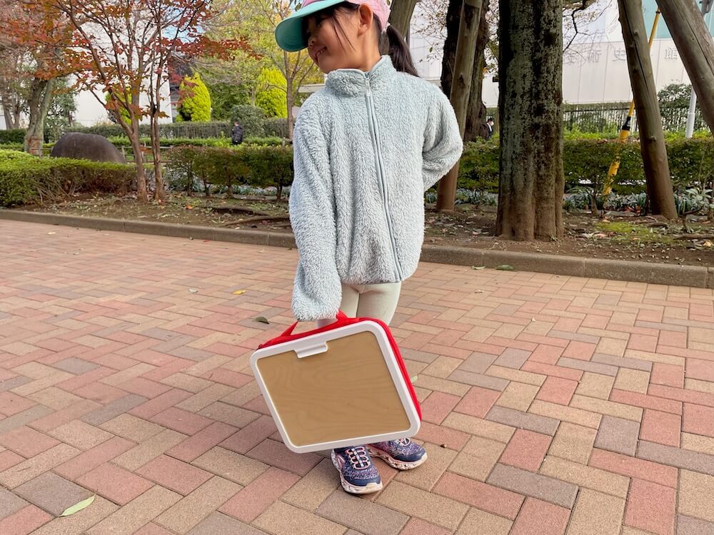 子どもにぴったりのサイズ感なので、ピクニックや旅行のお供にするとわが家の小さな芸術家の活動の幅がグッと広がりますよ♪