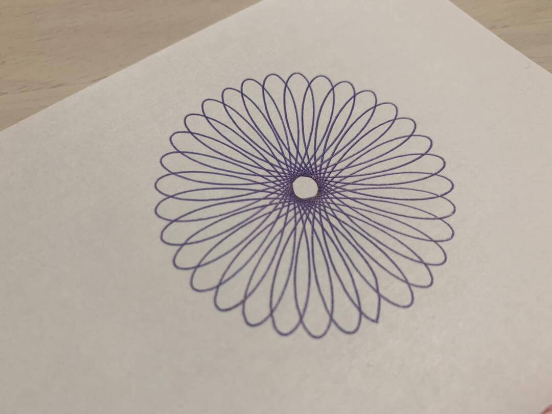 こちらは1番大きいピンクの歯車を使って描いたもの。