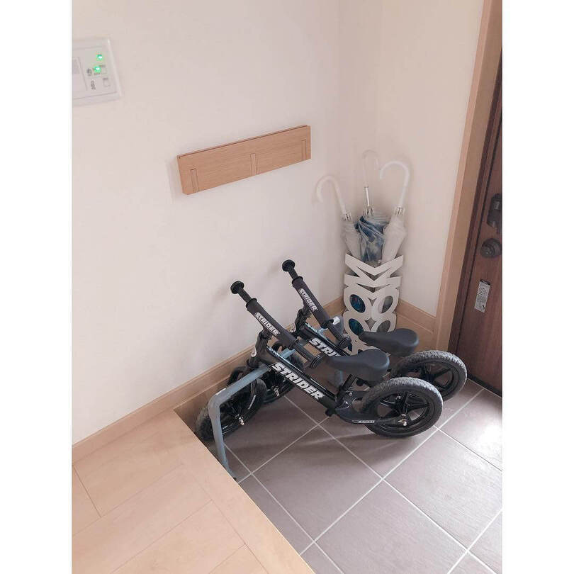 双子の男の子がいるYUKIさんのお宅では、ストライダーも2台!玄関に収納するためには、タイヤを斜めにして少しでも省スペースにしたいところです。