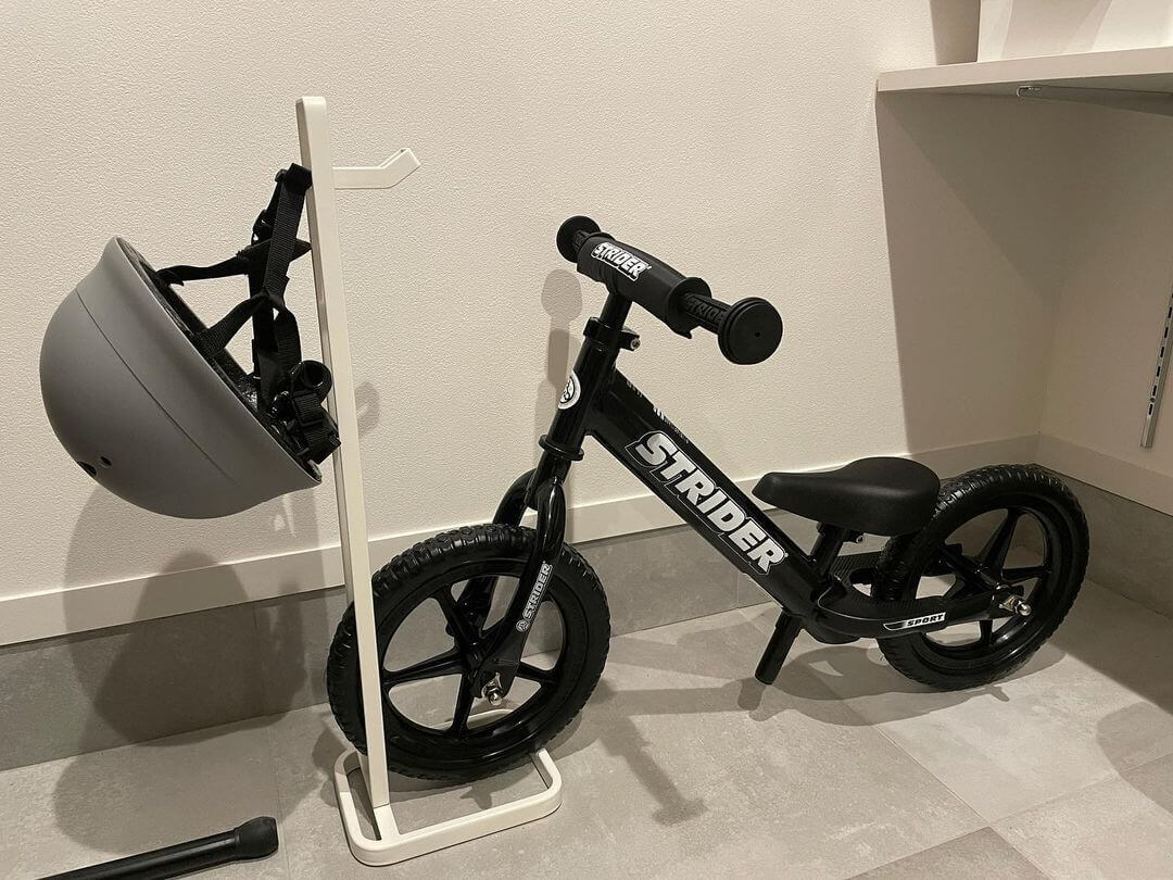 自転車の練習や公園遊びにもぴったりなストライダーですが、じつは自立しない機種がほとんど。スペースが限られる玄関まわりで、収納に困っている家庭が多いのでは?