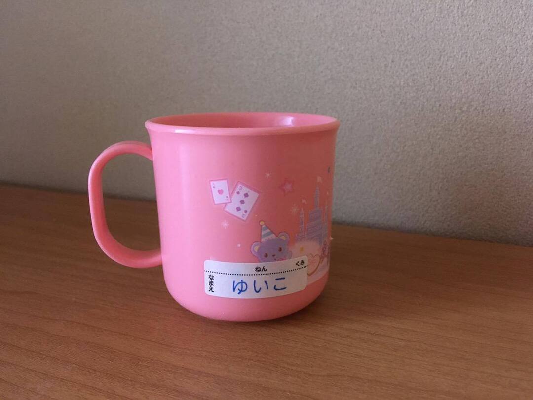子どもが保育園や幼稚園でコップを使う人にもおすすめ。こちらもお名前シールに押して貼りました。油性のスタンプ台なので洗っても落ちません!