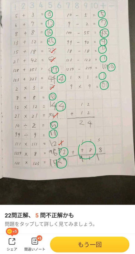 ひっ算は2つ用意していましたが、1つは読み取られておらず…改めてズームにして読み取ったところ正しく認識してくれました。