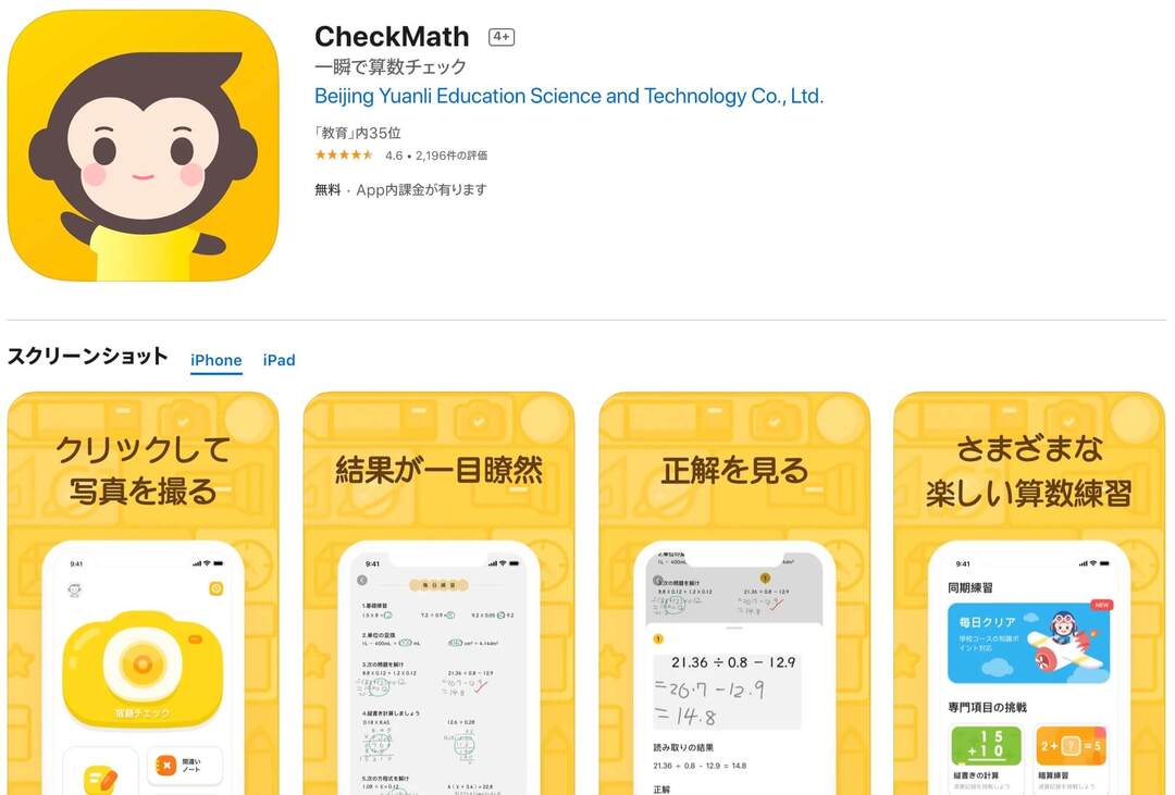 「CheckMath」はその名のとおり、算数の問題をチェックしてくれるアプリ。