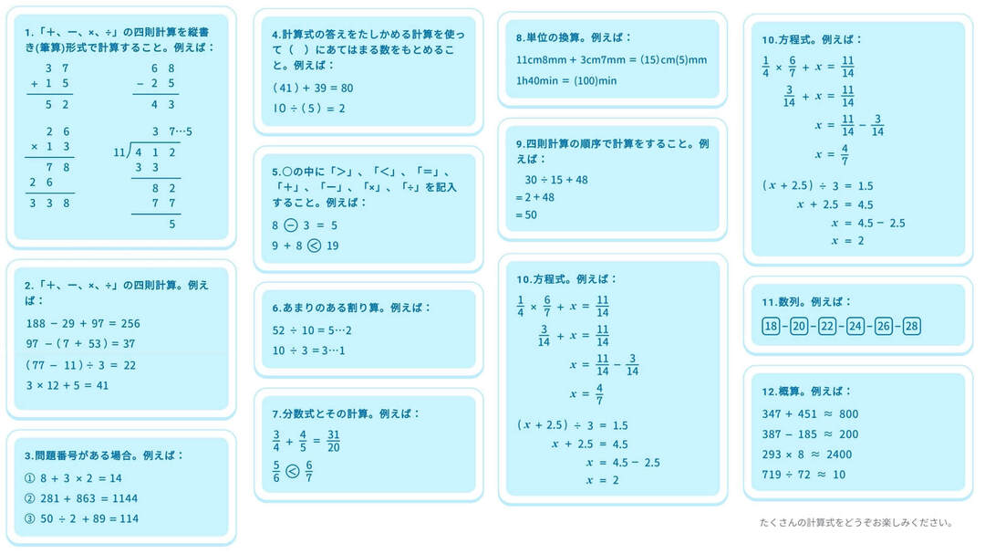 今回は基本的な四則演算、またひっ算の丸つけでしたが、CheckMathで丸つけができるのはこれだけではありません。