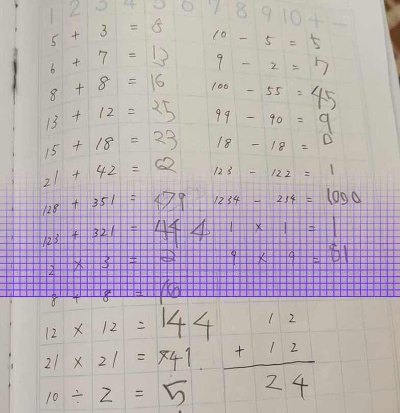今回は簡単な足し算から引き算、かけ算、割り算、また、ひっ算までさまざまな種類の問題の答案でチェック!