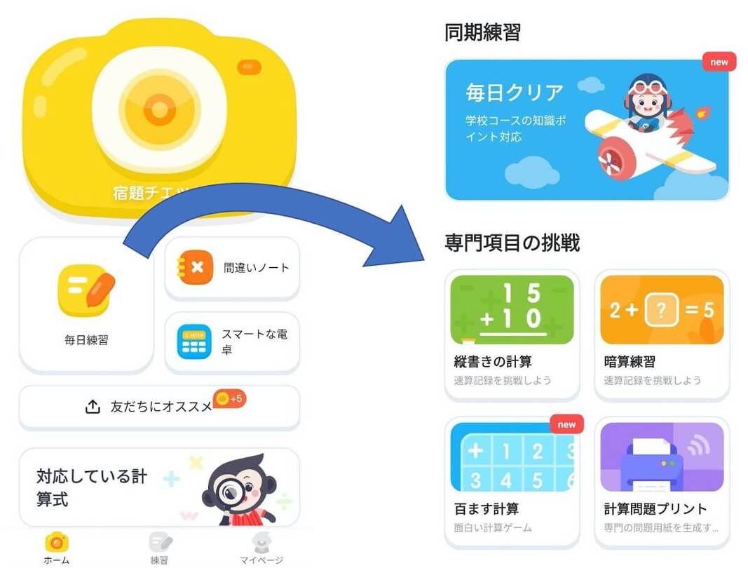 メニュー画面の「毎日練習」を選択すれば、ひっ算や百ます計算など難易度別にさまざまな算数の問題に取り組むことが可能なんです。