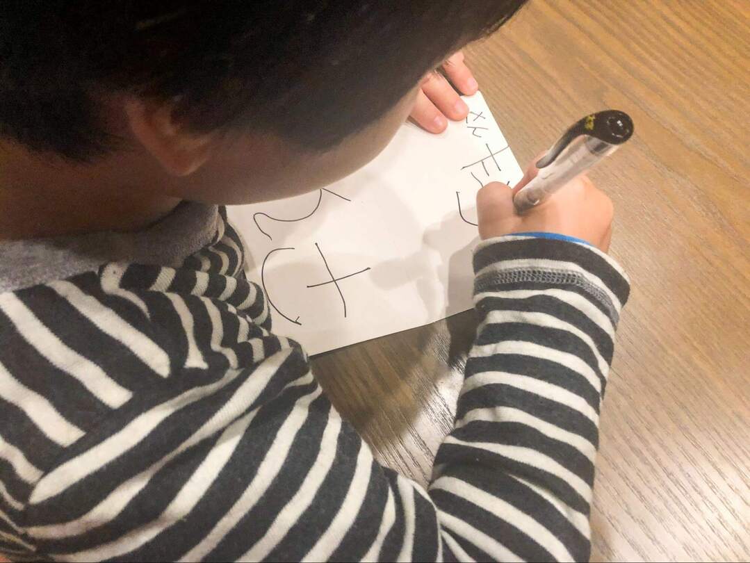 年中の長男はまだひらがなが完璧に書けるわけではありません。「絵でもいいんだよ~」と声をかけながら、難しい字は手伝いつつ進めていきました。