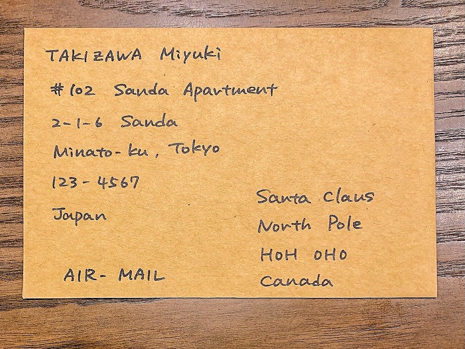 サンタさんへの手紙ですから、クリスマスまでに届かないといけません。カナダポストの公式ホームページによると、カナダ国内から贈る場合は12月10日が期限とのこと。日本から送る場合は11月中に投函すると確実でしょう。
