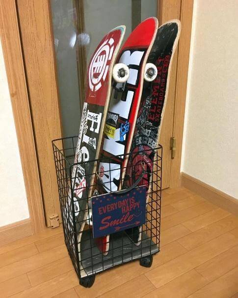 自宅のスペースに合う収納方法を見つけて、スケボーをスッキリ収納できるよう参考にしてみてくださいね。