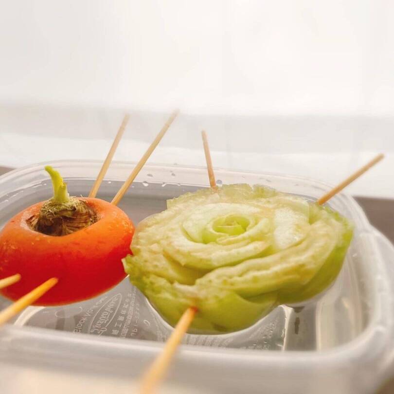 まっしゅるーむさんは、にんじんとチンゲン菜の残った部分につまようじを刺して水耕栽培に。にんじんは3日ほどでニョキっと芽が出てきたそう。