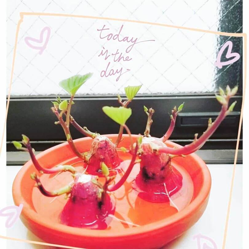 さつまいもは茎もきんぴらなどにして食べられます。bi_chan55さんは、料理の彩りや飾りにも使っているんだそう。 毎日水を変えたりたくましく育つのを見てると、愛情もわいてきて、おいしく調理してあげたくなるんだとか♡