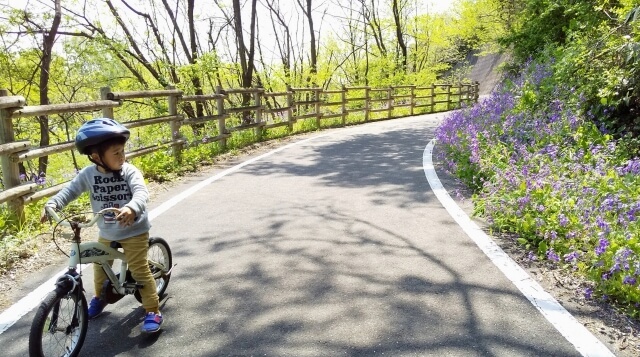 そろそろお友だちとさよならする時間かな、という頃合いで、「自転車であと3周したら、おうちにおやつを食べに行こうか」と声をかけました。