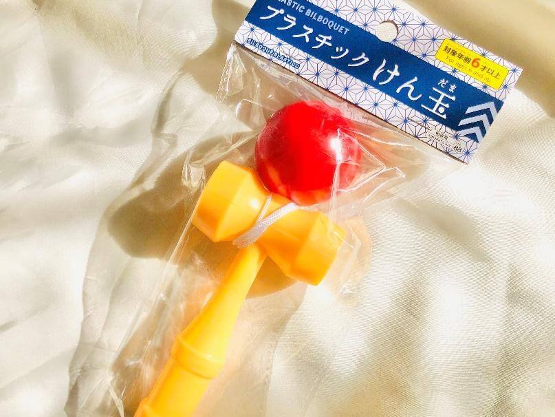 こちらのけん玉は、ダイソーで手に入る昔懐かしいおもちゃ。