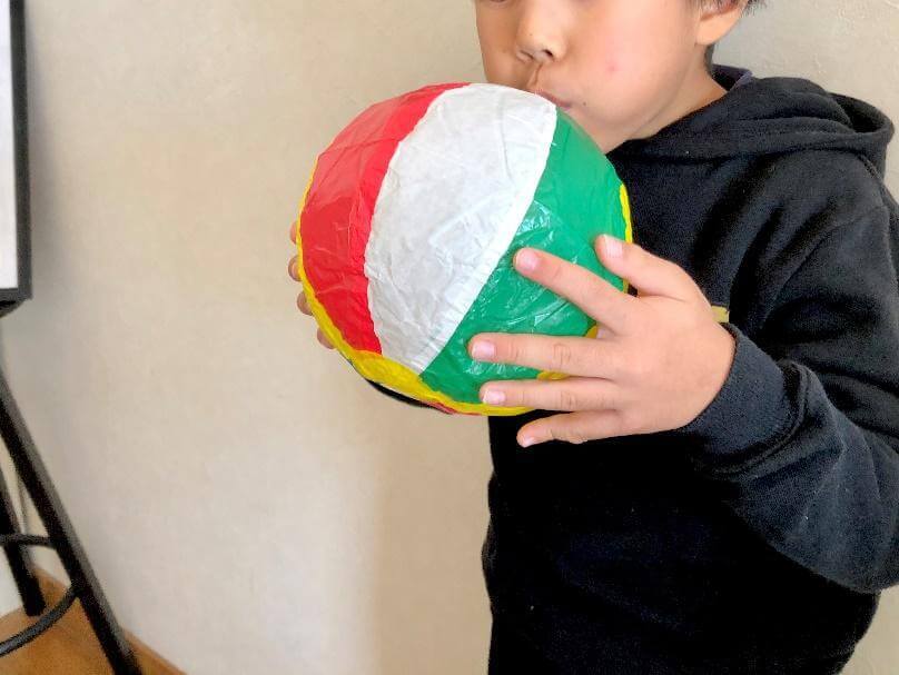 肺活量が少ない子どもがゴムふうせんをふくらませるのはなかなか難しいですが、紙ふうせんならコツさえつかめば子どもでも簡単にふくらませることができます。