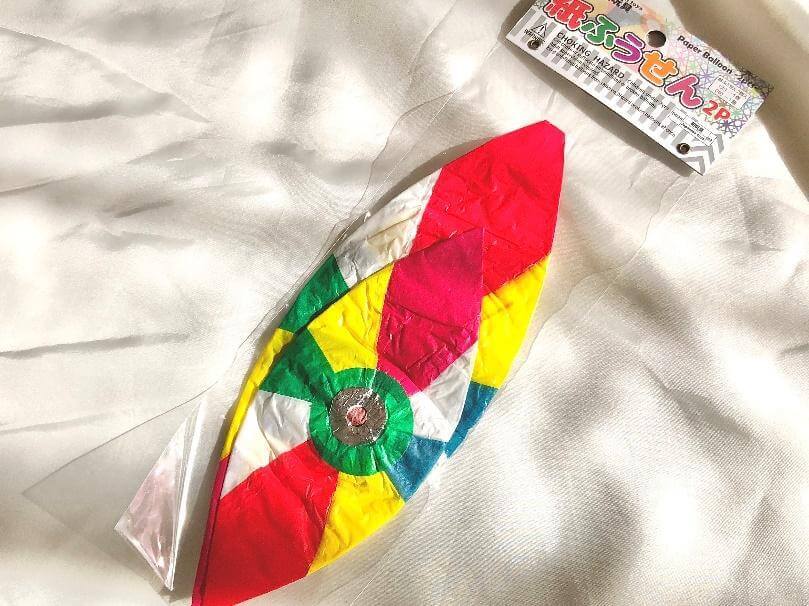 カラフルな色づかいが印象的な「紙ふうせん」は、ダイソーでは大小の風船が2つセットになっていました。