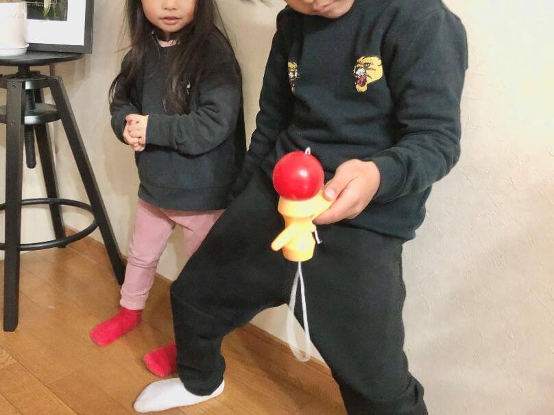 プラスチック製なので木製のけん玉に比るとややチープな印象はあるものの、少し軽めで小さな子どもでも安心して遊べる印象です。