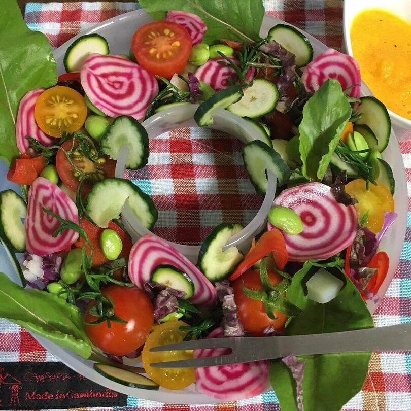エンジェルプレートはもちろん、お皿としてそのまま使えちゃいます! サラダの盛りつけは、崩れやすくて意外と難しい…。そんなお悩みも、エンジェルプレートが解決してくれますよ♪立体的で華やか!さらに家族それぞれが取りやすい盛り付けが完成!