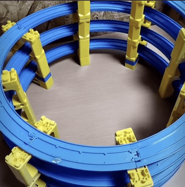 レールをらせん状にセットすれば、ビー玉がグルグルと回りながら転がっていきますよ♪