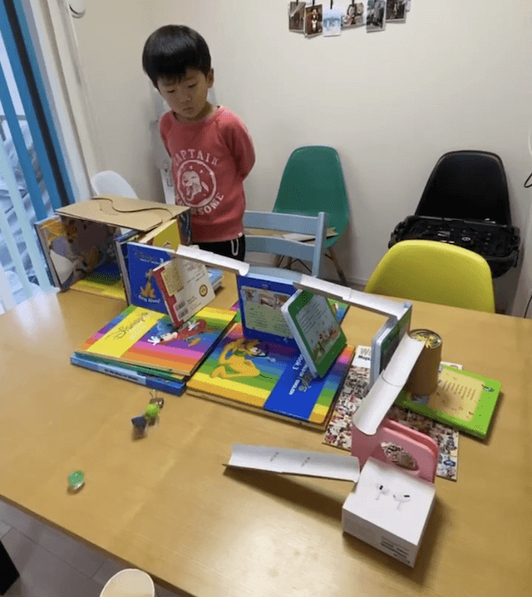 いろんなアイデアを駆使しながらおうちにあるもの使って作るピタゴラ装置は完成した時の喜びもひとしおです。