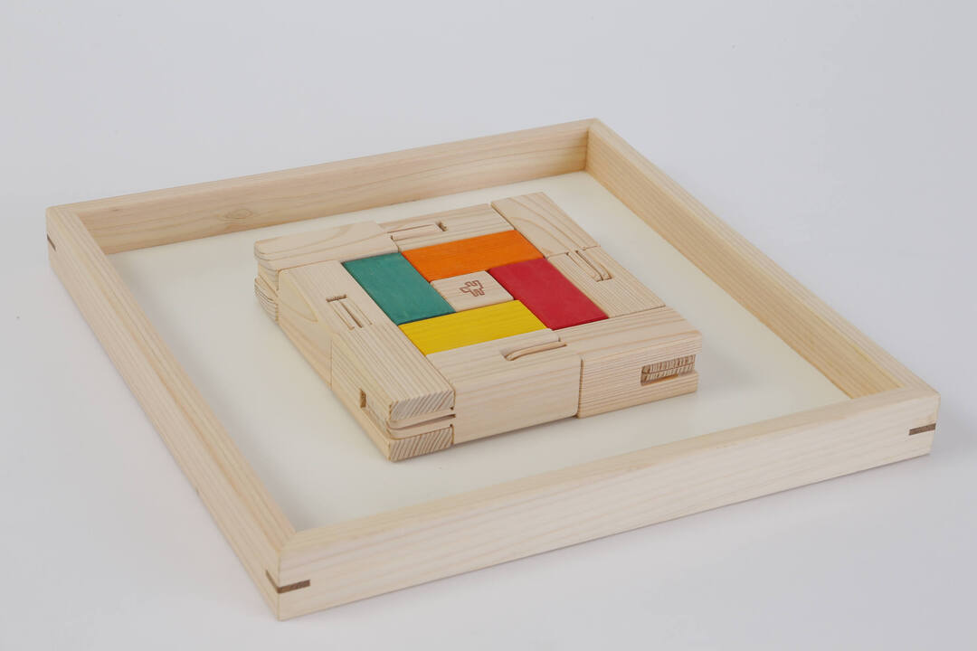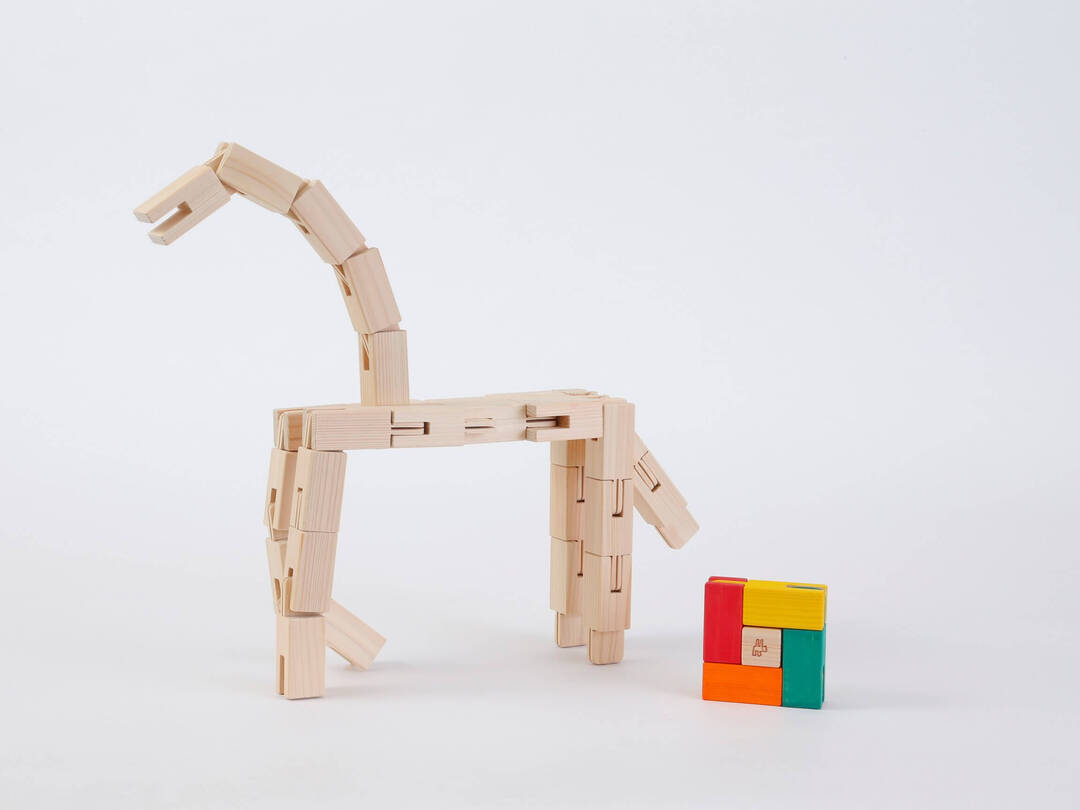 木製パーツを、つないで・はさんで・つんで立体作品を作ることができるおもちゃ。