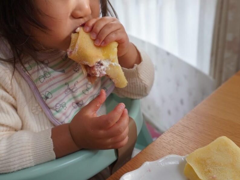 今回はヨーグルトを使用しましたが、もう少し子どもの年齢が高ければ、ホイップクリームを挟んでもよく合うと思います。