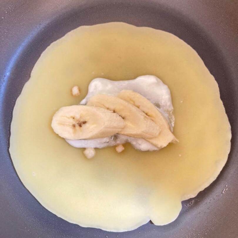 冒頭に書いた通り、朝食ではバナナとヨーグルトしか受け付けない娘。ブリトーにも合うのでは?と思い、この2つを包んでみました。