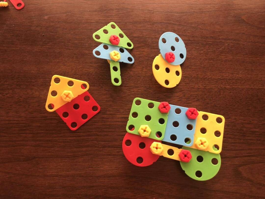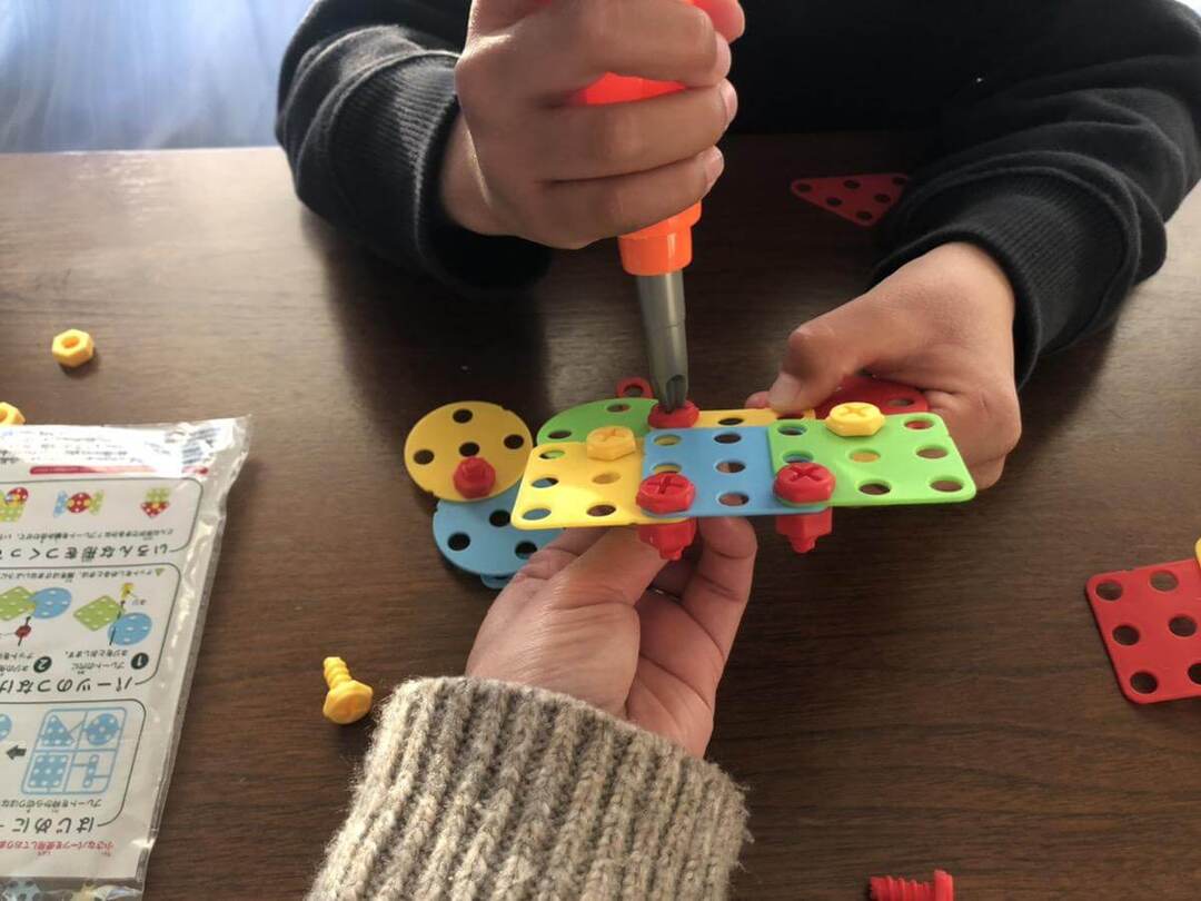 どのパーツを組み合わせてどんな形を作ろうか考えることで創造力を、そしてドライバーとネジを使うことで手先の使い方を学べる「ねじねじプレートパズル」。