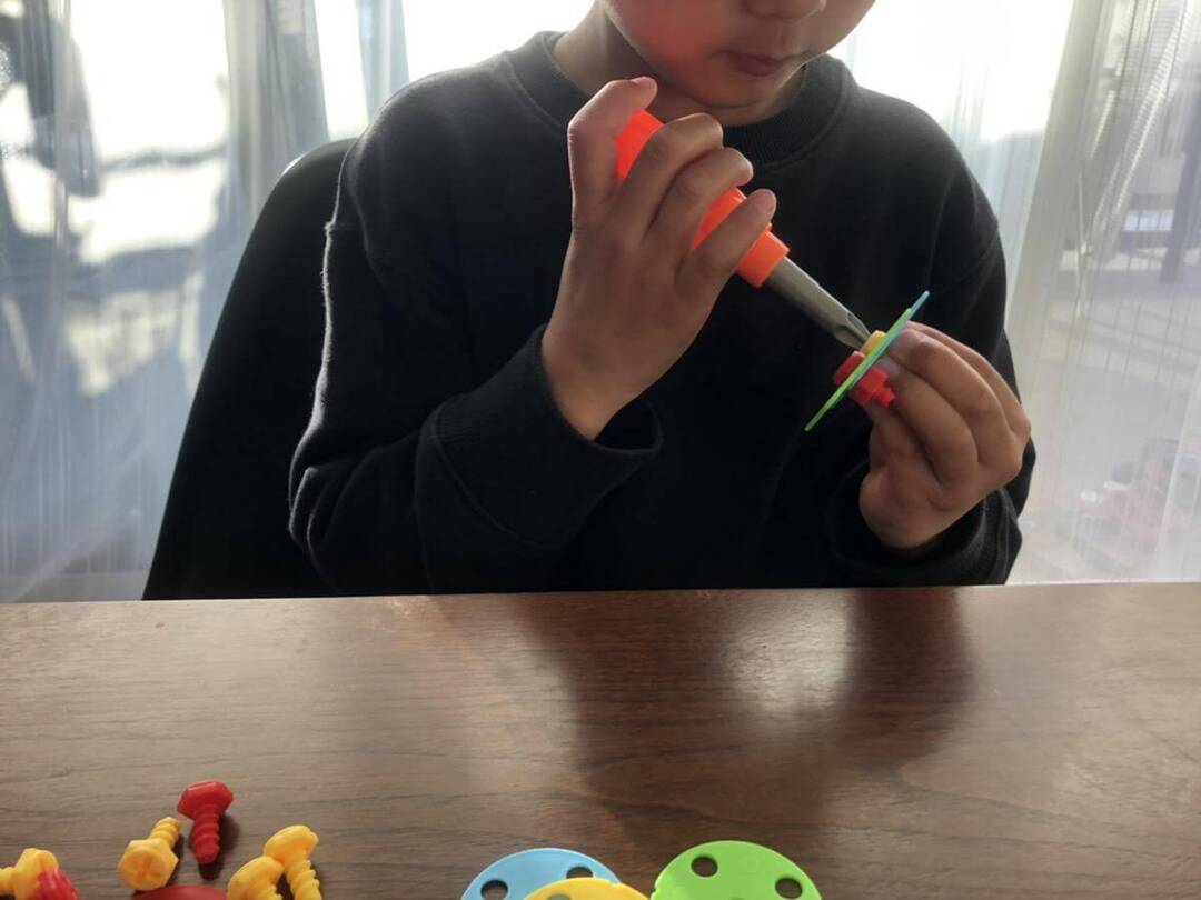 今回は、4種類の形を作った息子。感想を聞いてみると「ネジをくるくる回すのが楽しかった!汽車がちょっと難しかった。今度はもっと大きな形を作ってみたい!」ととても楽しかった様子。