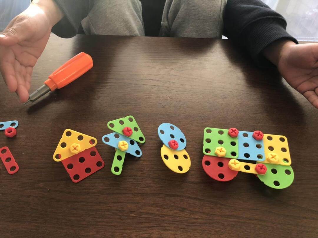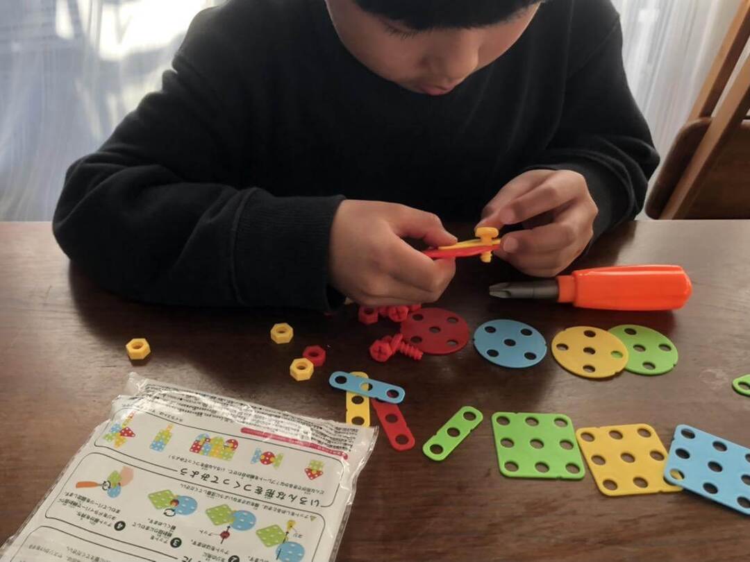 どこをねじで止めればいいか、よく見ないと同じ形ができないので、完成形をよく観察して、どうしたら同じ形になるかを考える力が養われます。