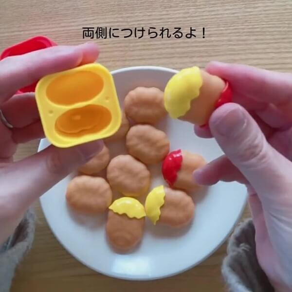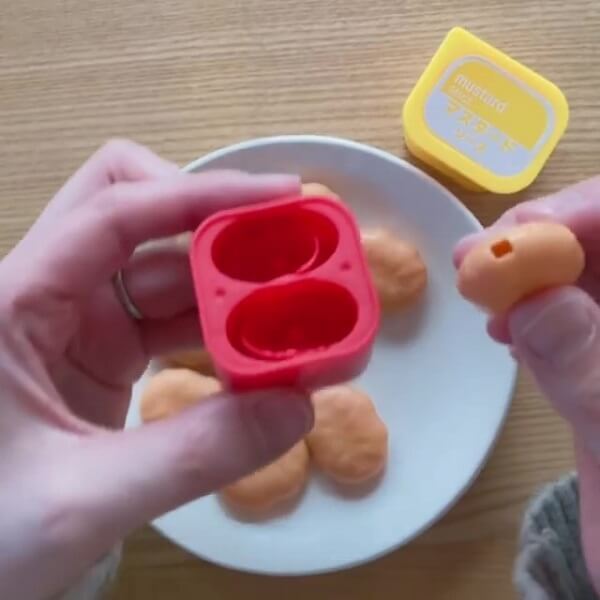 ぐっとケースにナゲットを押し込むと、ソースがくっついてくるんです!つやつやしたソースの感じや、ベチャっとくっついた様子もリアル!
