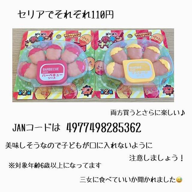 大人気のセリアの「ぱくぱくチキンナゲット」(110円・税込)は、その名の通りファストフードでよく見るチキンナゲットの形をしたおもちゃ。