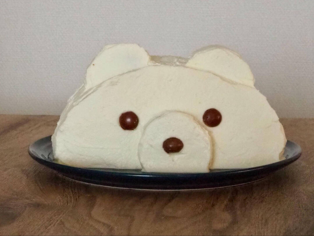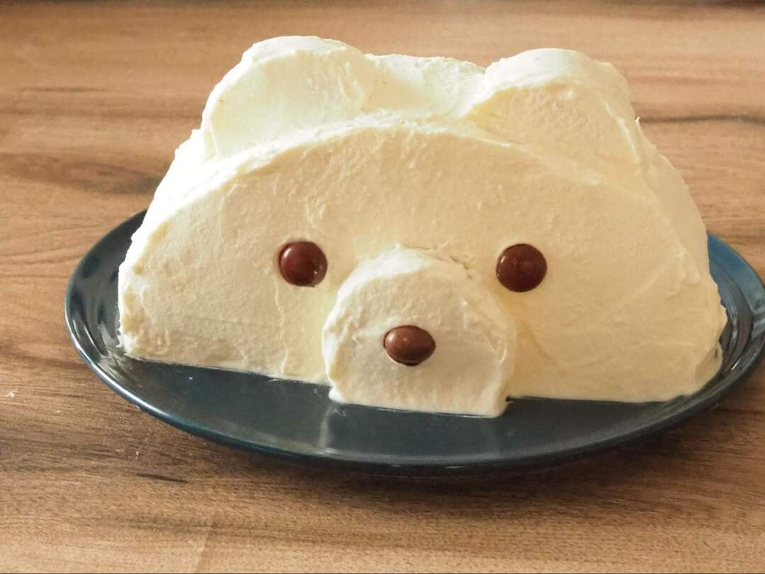 耳や鼻の部分も生クリームで作ったり、ココアパウダーを混ぜたクリームで茶色いくまさんにしたり…表面をなめらかにしないでクリームを絞って付けると、ふわふわの毛並みにも!