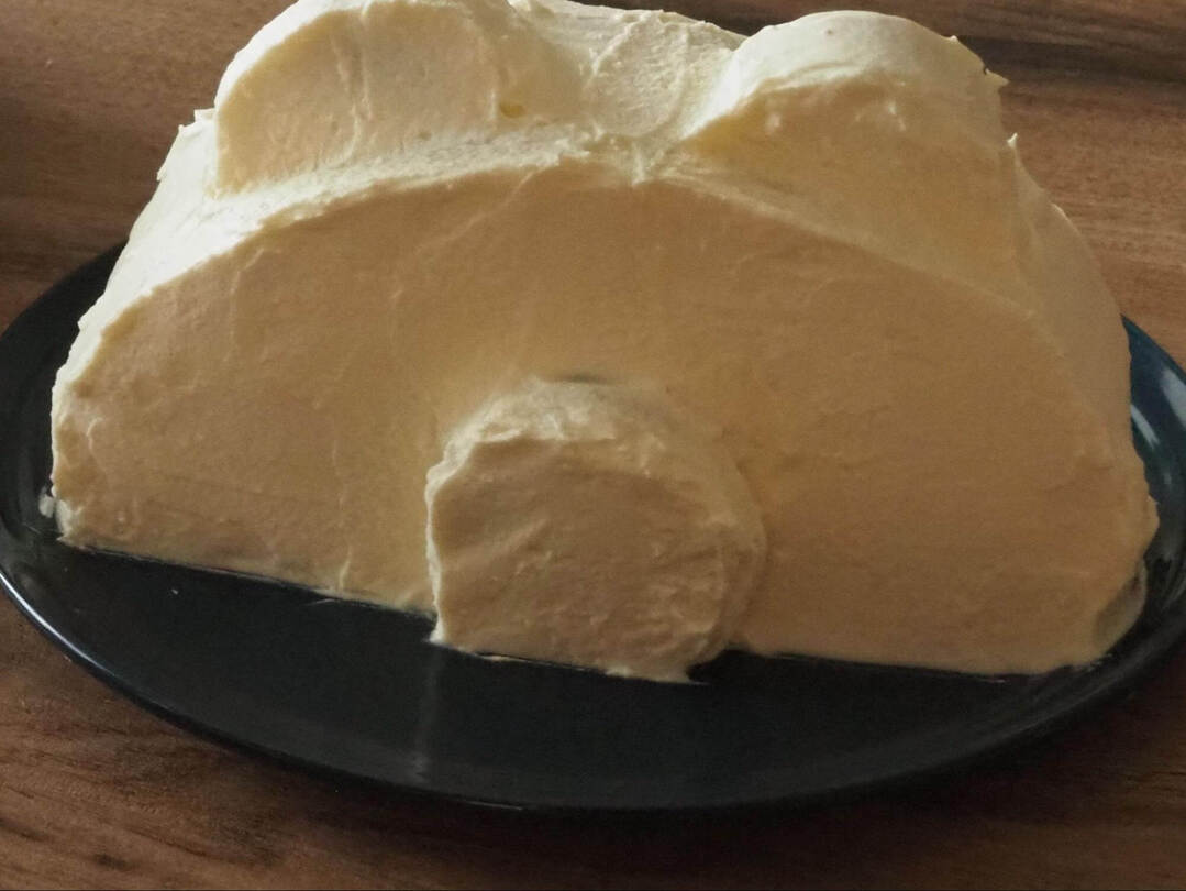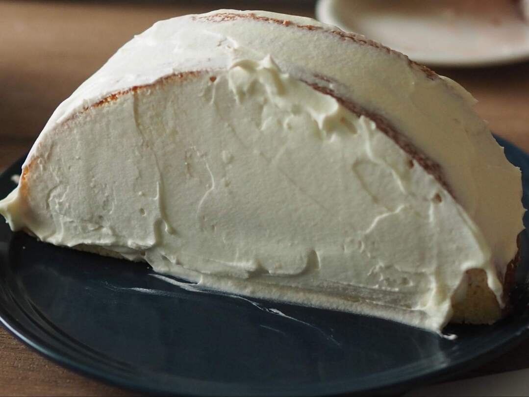 生クリームをたっぷりのせて、伸ばしながら余分なクリームを削ぎ落としておくようにするとうまくいきます! これで、白くまのベースは完成です♪