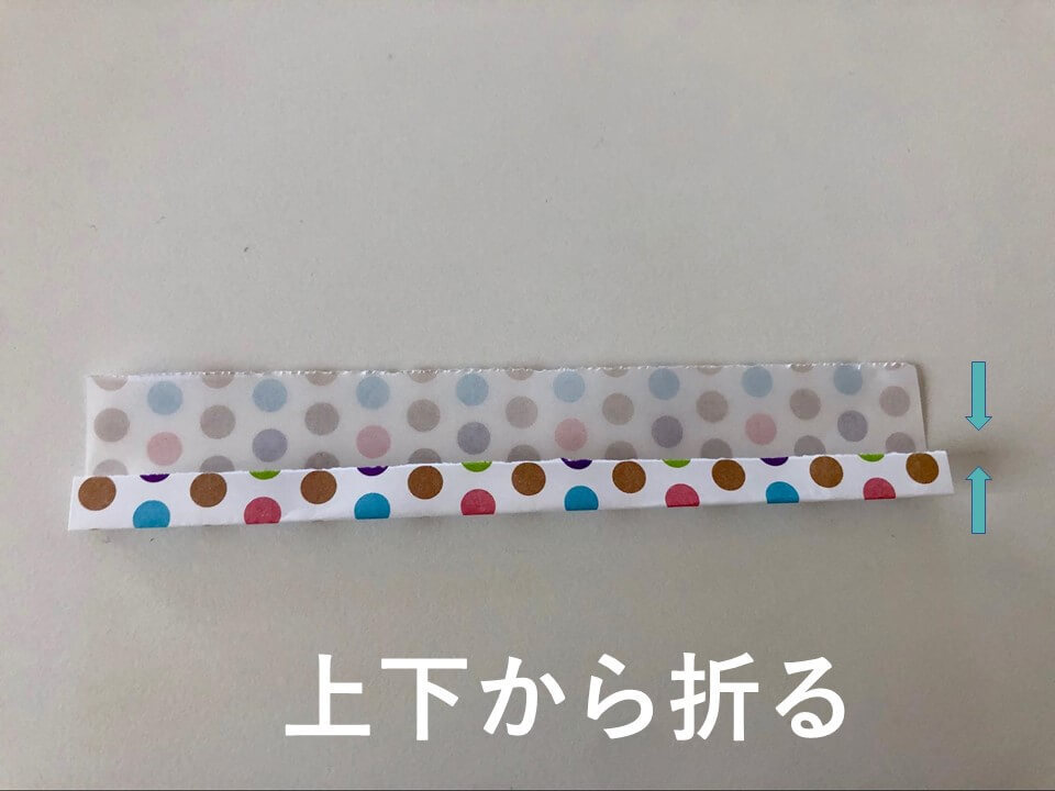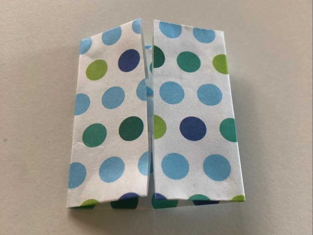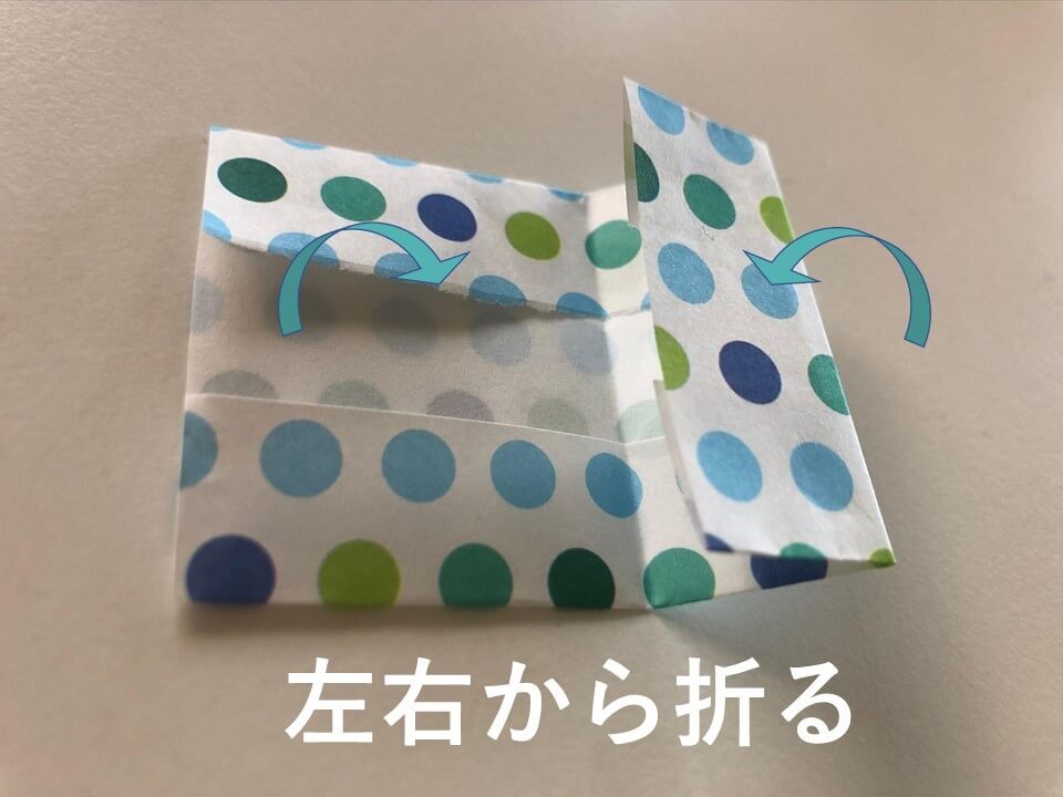 ▲真ん中の折り目に向かって、左右から半分に折ります