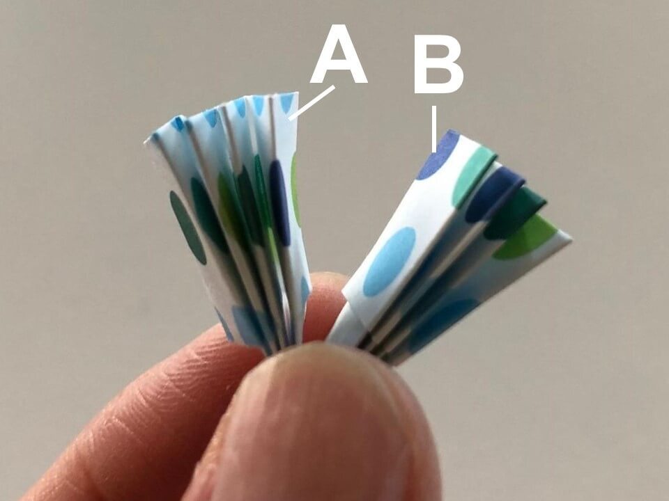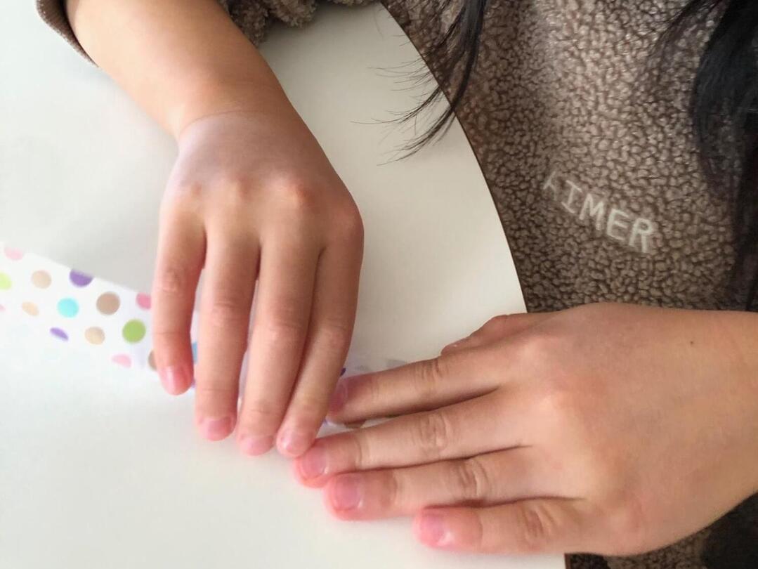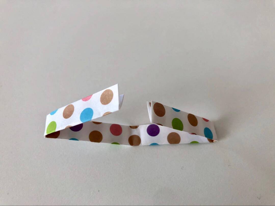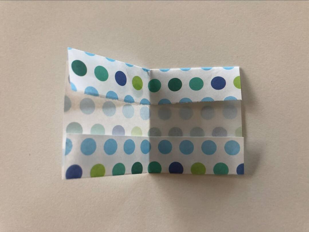 どんどん細く、どんどん小さく折っていくので、どこまでひとりでできるかな?と見守っていましたが…6の両端を1/3ずつ均等に折るところまでは娘だけで折れました!