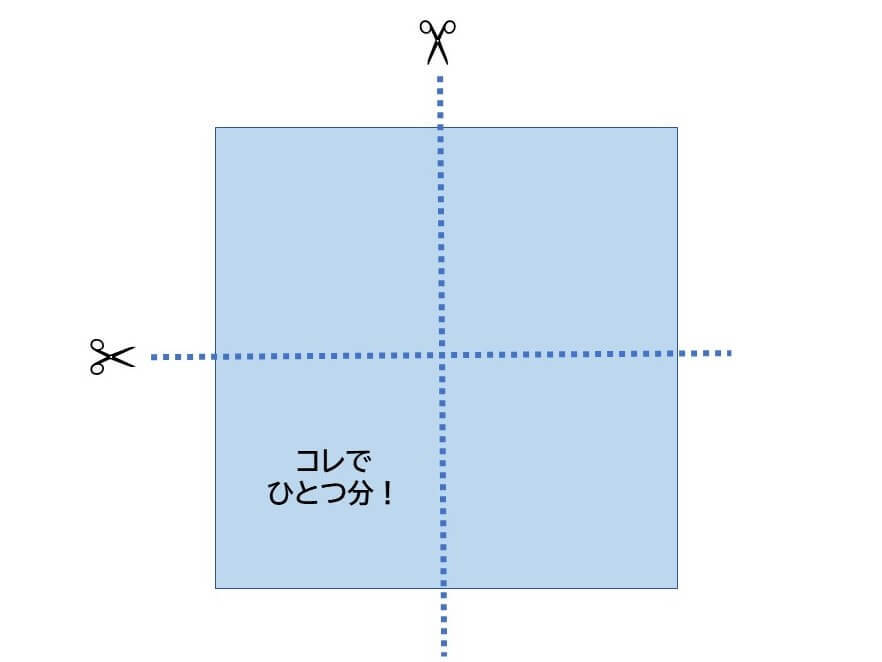 用意するのは一般的なサイズの折り紙(15×15cm)1枚。こちらも1枚で4個の箸置きを作ることができます。