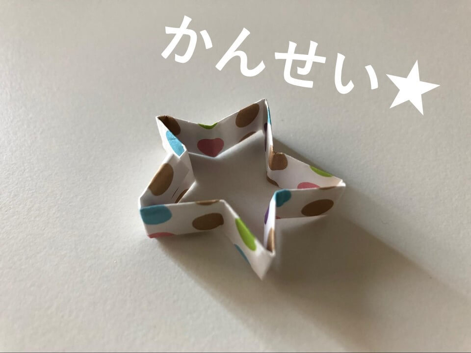 作った山折りは6つですが、星の突起は5つ。山折り1つ分を挿しこんで形を整えます。