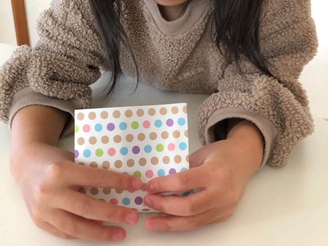 4歳の娘に作るのを手伝ってもらいましたが、工程4のじゃばらに折るところまではわりと簡単なので、初めてでもスムーズにできました。
