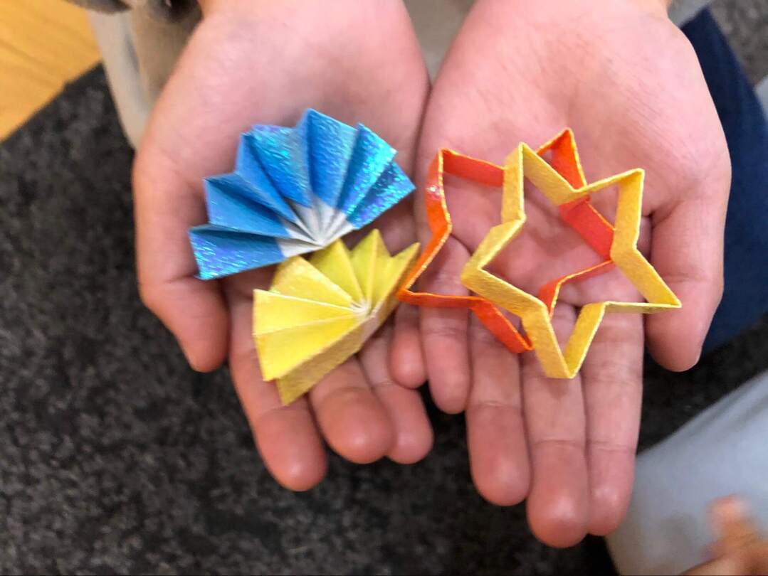 扇よりもやや難易度が高い、星の箸置き作りにも娘が挑戦!