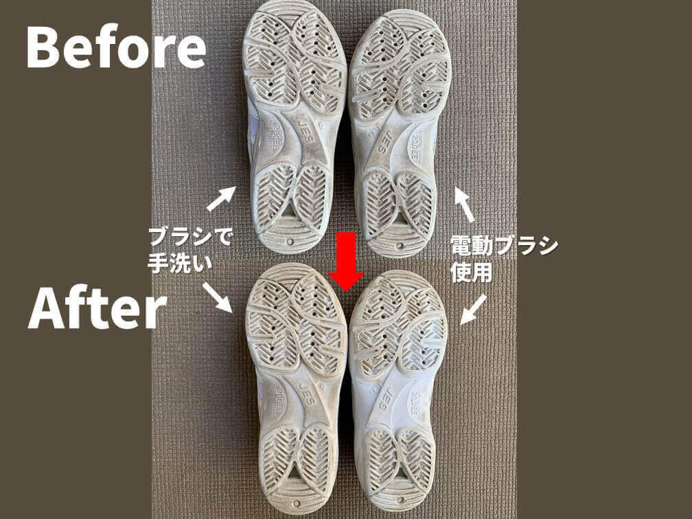 ただし、手洗いだと力尽きてしまいがちな靴底については、電動ブラシに軍配が上がりました。