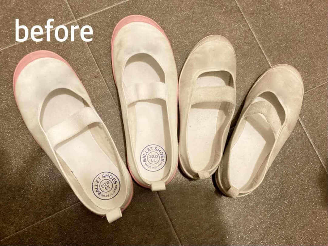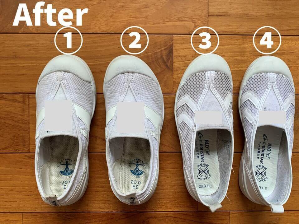 上履きと靴が乾いたところでどれだけきれいになったかをチェックすると、2足とも劇的にきれいになっています!